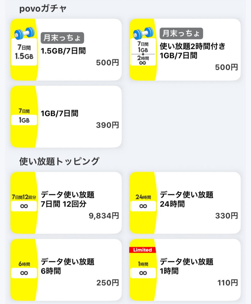 またpovoは月末締めの契約ではないため、月末にデータを追加購入しても月初(一日)にリセットされることはありません。有効期間が終わるまでデータを無駄にすることなく利用できます。